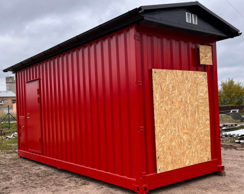 Metallprofil av S235-material och 2 mm tjocka plåtar, som är sandblästrade och målade enligt standard C3-system. Isolering 50mm PAROC, metallisk perforerad plåt för interiör (väggar, tak), ISO-kuber för lyft. Anti-slip metallgolv med 100 mm bränsleläckageskydd. Säkerhetsdörrar med ASSA-komponenter eller likvärdigt och nödöppnare, steg vid entrén, regntak över dörrar, sadeltak, avvattning stuprör, öppningsbar och låsbar servicedörr i slutet av containern